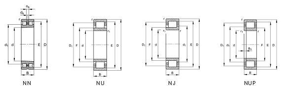 Single row cylindrical roller bearings can accommodate heavy radial loads and high speeds. They are manufactured in several different designs,the main difference being in the configuration of the flanges .The most popular are the NU,N,NJ and NUP designs.